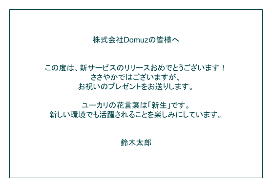またメッセージカードも無料で追加が可能です。90文字以内でご自由にメッセージを入力でき、素敵なカードに印刷して同梱いたします。