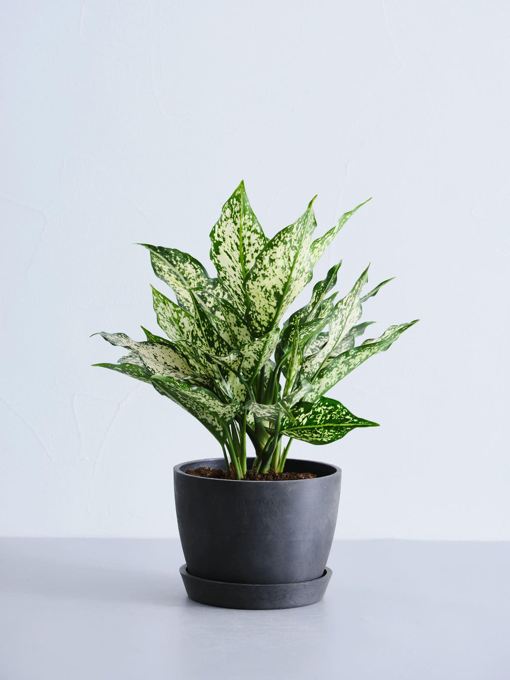独特の葉模様・品種ごとに異なる葉色が個性的で人気のアグラオネマ。雪の結晶のようなホワイトの散り斑が特徴から「スノーフレークス」と呼ばれています。生育期には白い花を鑑賞できます。