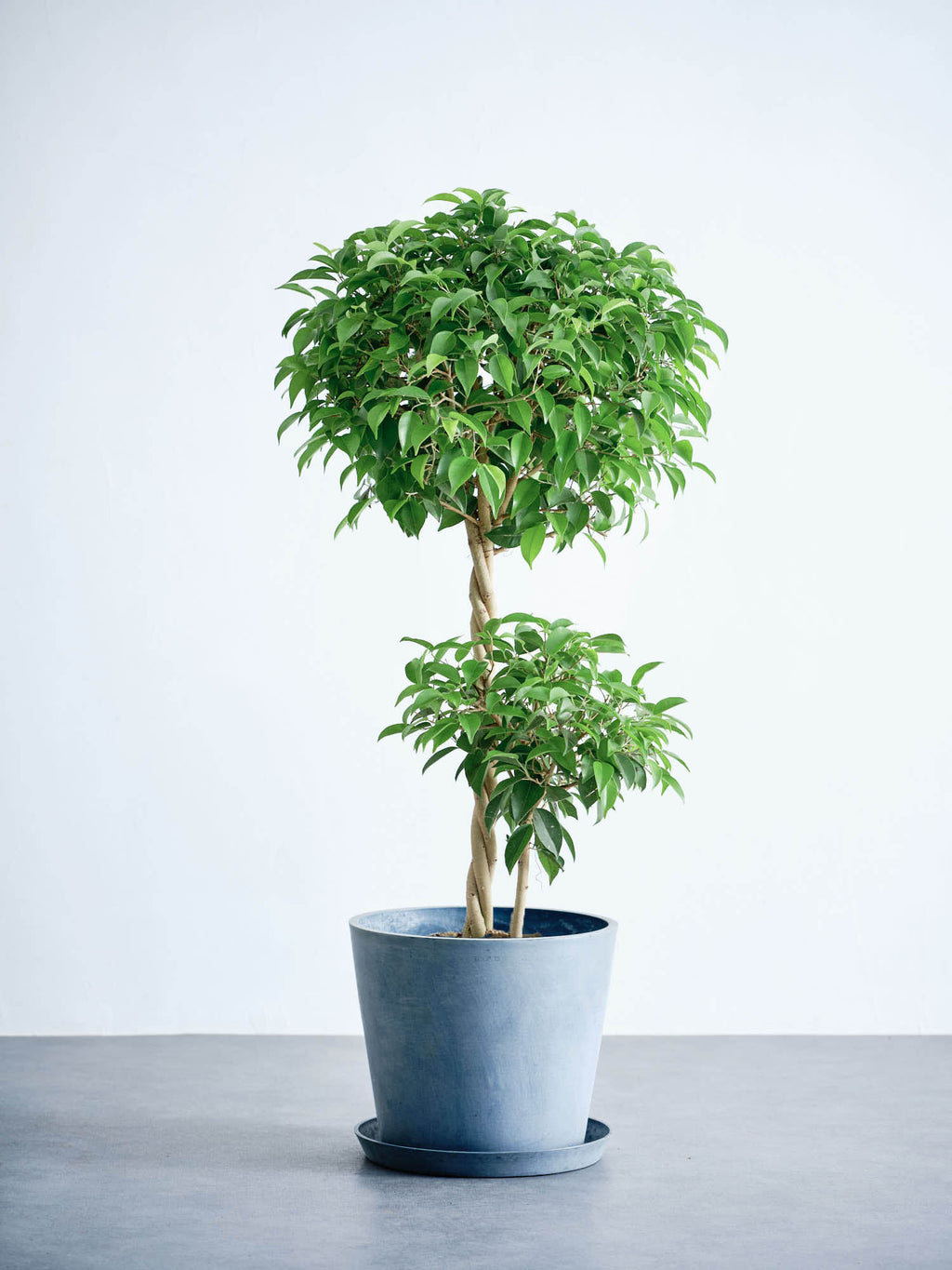フィカス・ベンジャミンは卵型のシルエットが魅力的な観葉植物です。ゴムの木の一種で、育てやすさに定評があります。葉の一枚一枚が大きく広がらないため、周囲のインテリアともバランスが取りやすいです。