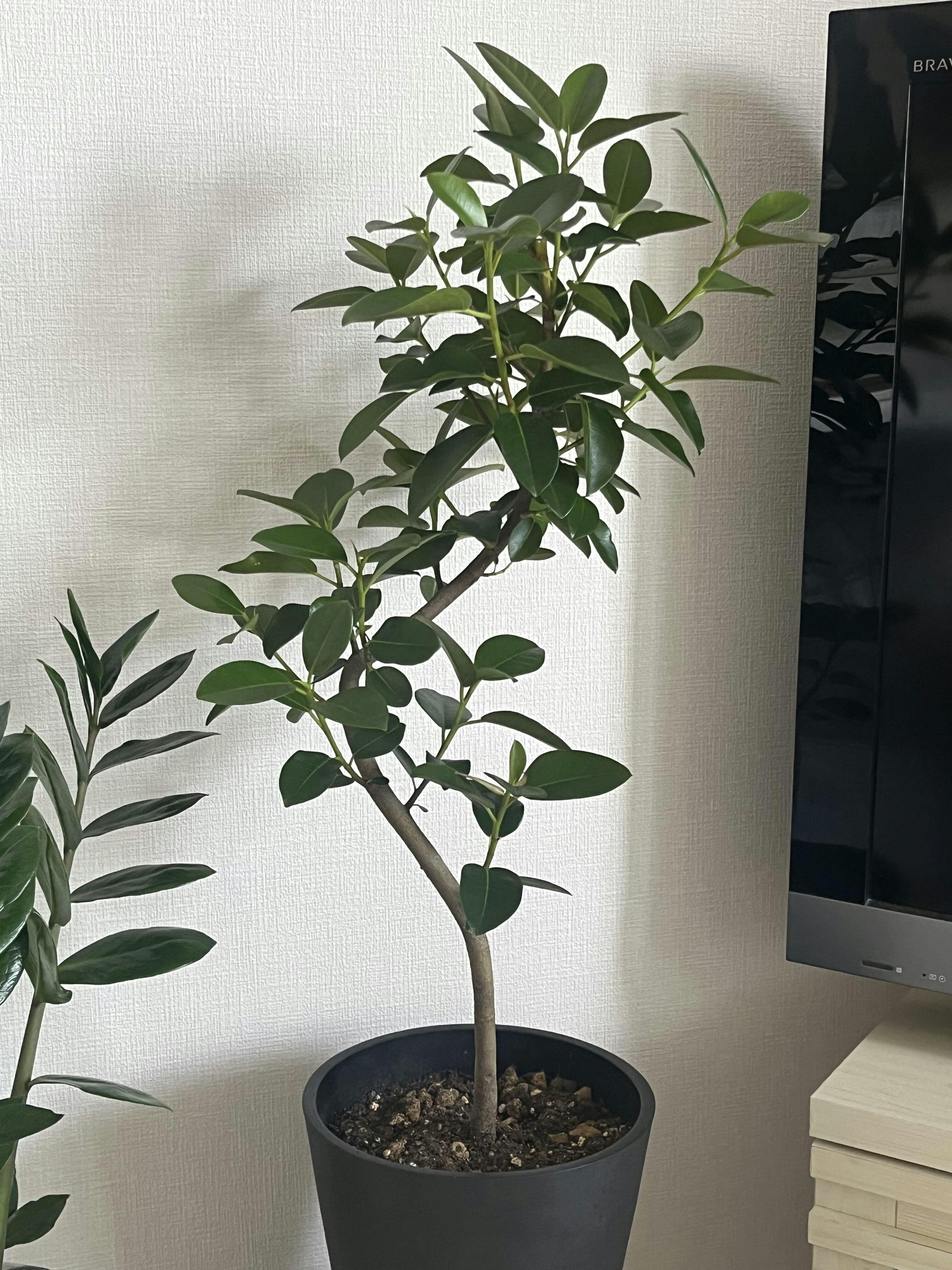 ゴムの木では珍しく、枝垂れるような姿に育ちます。