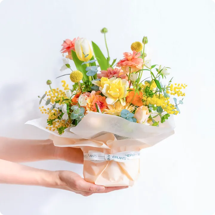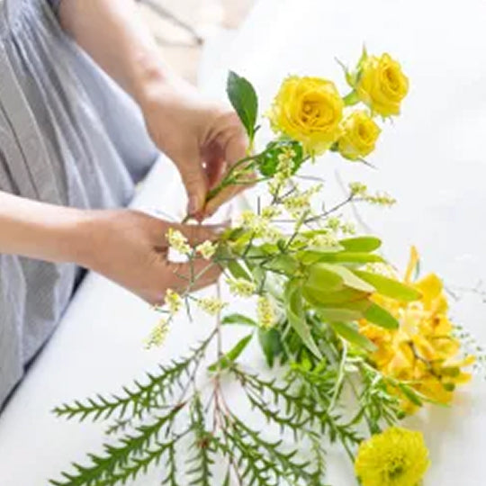 ご利用シーンやお好みの雰囲気・色合いなどをお伝えいただくだけで、経験豊富なフローリストがひとつひとつ丁寧に、理想の花をお作りします。