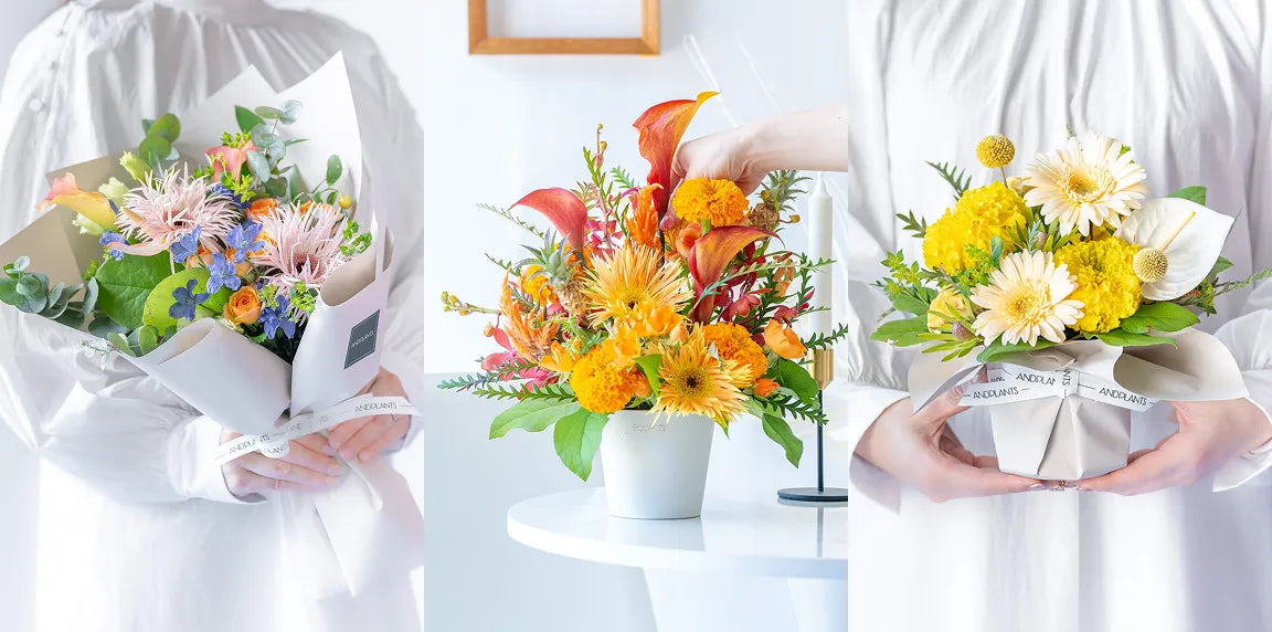オーダーイメージに合わせて、珍しい花材や素敵な組み合わせで普段からお花に親しんでいる方にも楽しんでいただける魅力的な商品をご用意します。