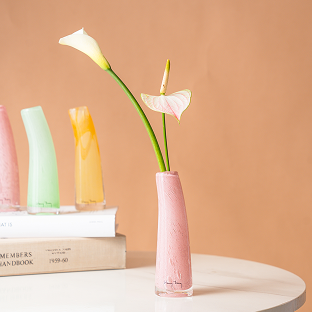 ヘンリーディーンの今期の新作花瓶に、カラーリリーとアンスリウムの2本を挿した限定商品です。