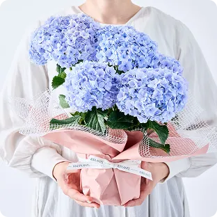 淡いグラデーションが入った小花が上品で愛らしい印象を与えてくれるアジサイの花鉢です。育てやすく、初心者の方にもおすすめです。