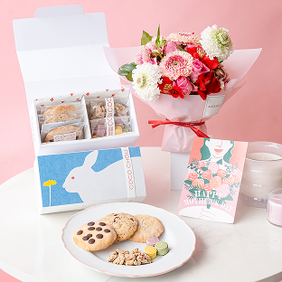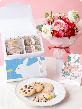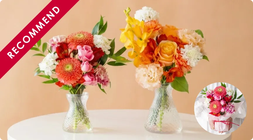 ミニボックスや母の日限定花束に、お花と一緒に楽しめるギフトを添えたセット商品です。