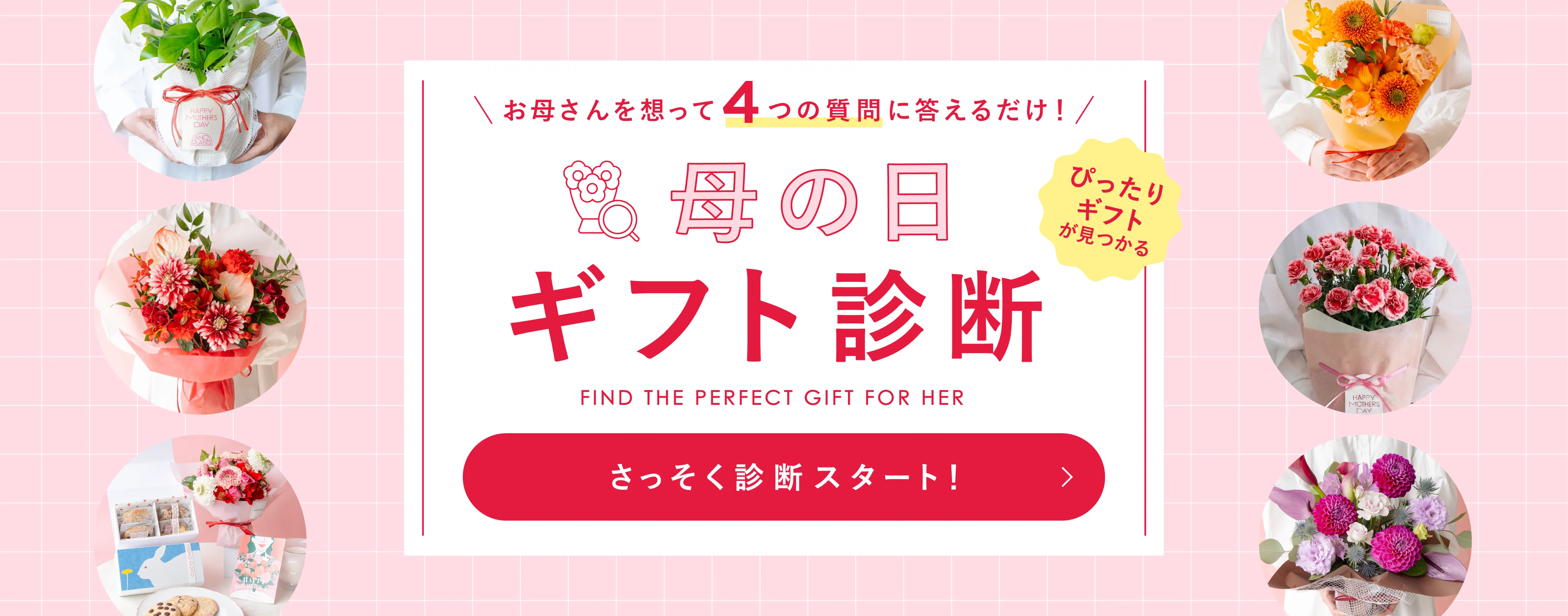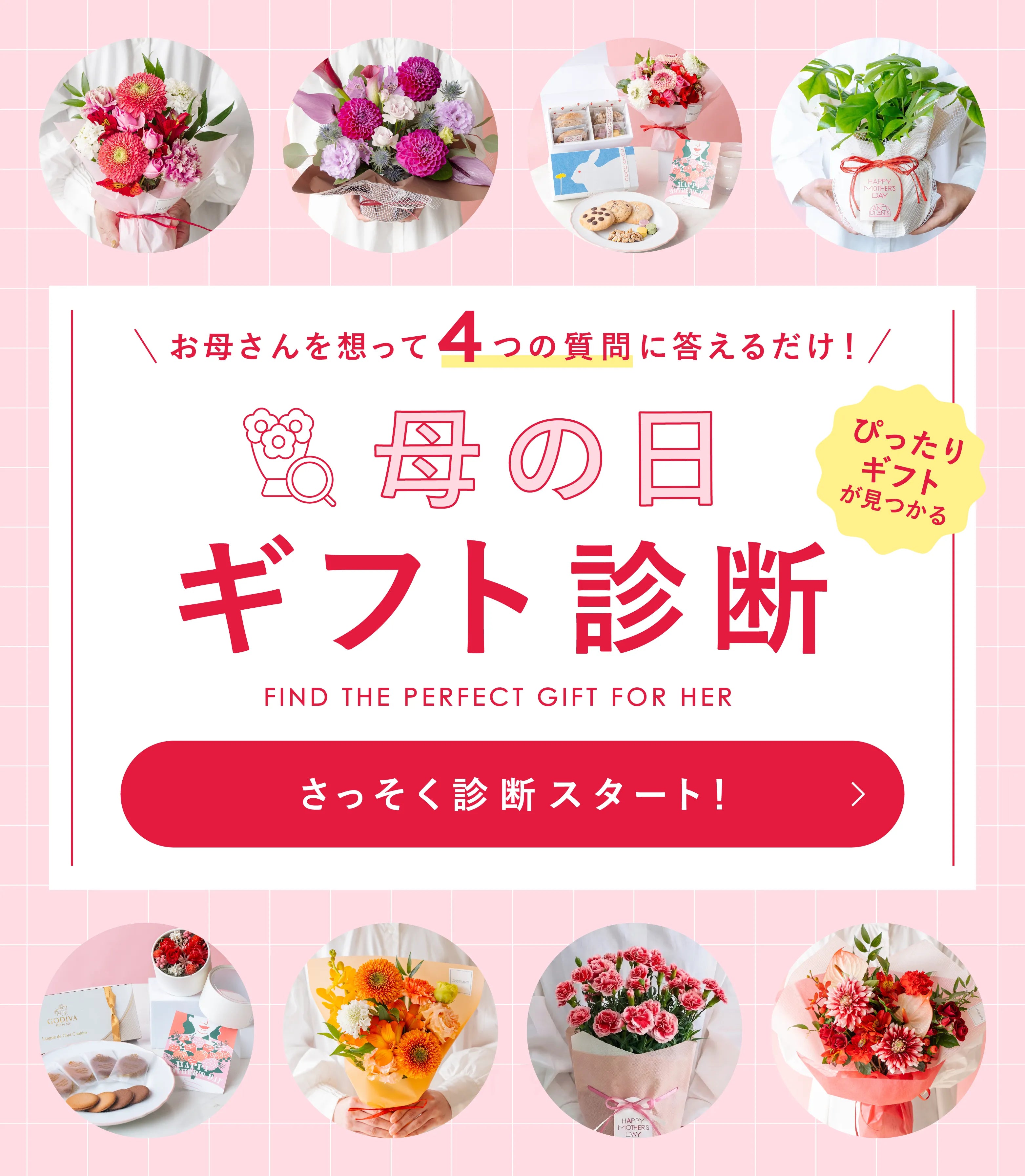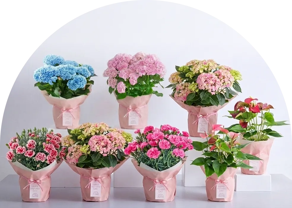 A 華やかなバラやダリア、初夏の訪れを感じさせる芍薬などが選ばれています。また、長く暮らしに寄り添う観葉植物や、スタイリッシュなアジサイの花鉢も、インテリア好きなお母様に大変好評です。