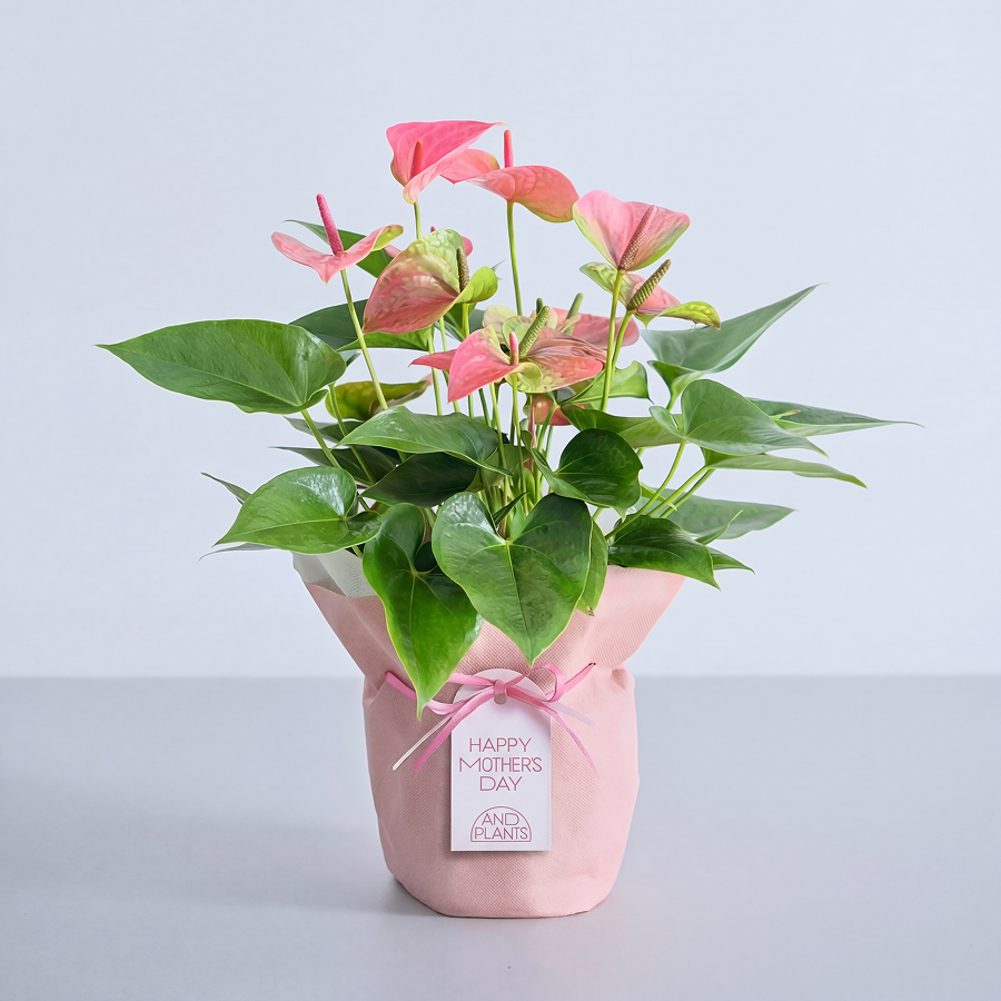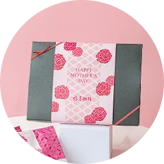 母の日限定のオリジナルラッピングでお届けいたします。淡いピンクの愛らしく温かみのある雰囲気が母の日にぴったりです。