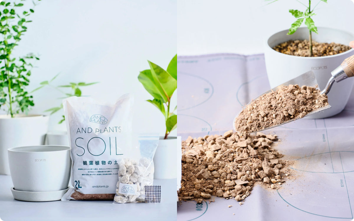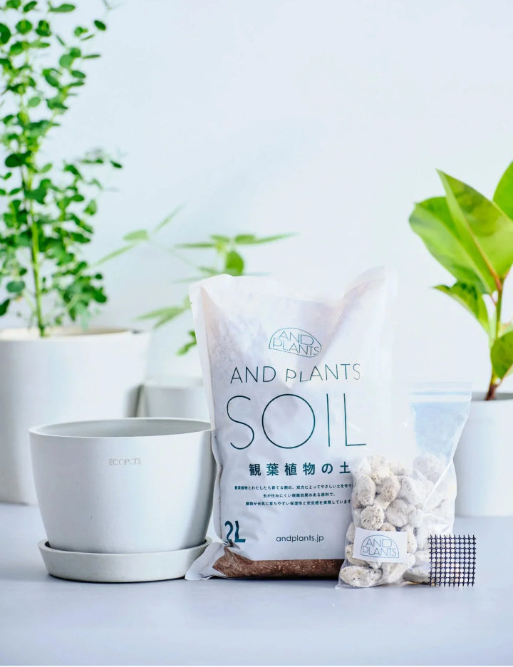 アンドプランツの植物バイヤーと専門チームが監修した植え替えセットです。初めての植え替えでも安心な厳選アイテムをセットでお届けします。