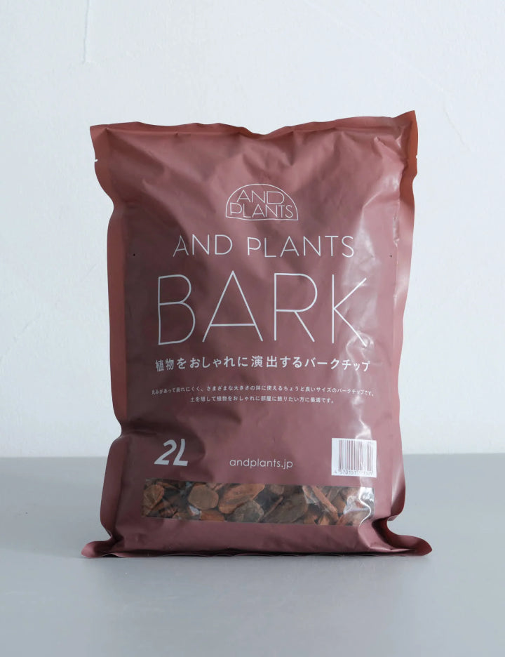 植物をおしゃれに演出するバークチップです。角に丸みがあり、崩れにくく扱いやすいチップが人気です。土が隠れるので清潔感もアップします。