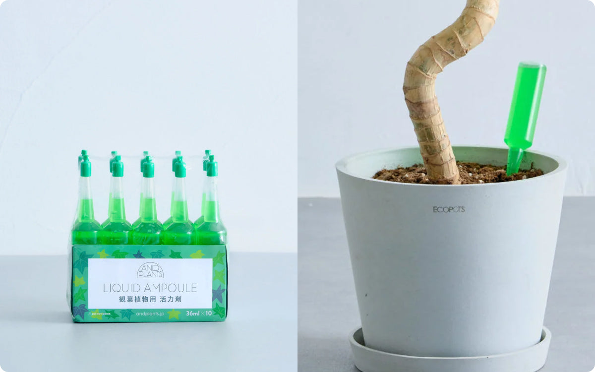 植物のプロと各業者とで何度も試行錯誤を重ねて作ったアンドプランツオリジナルの観葉植物の土や活力剤が誕生。