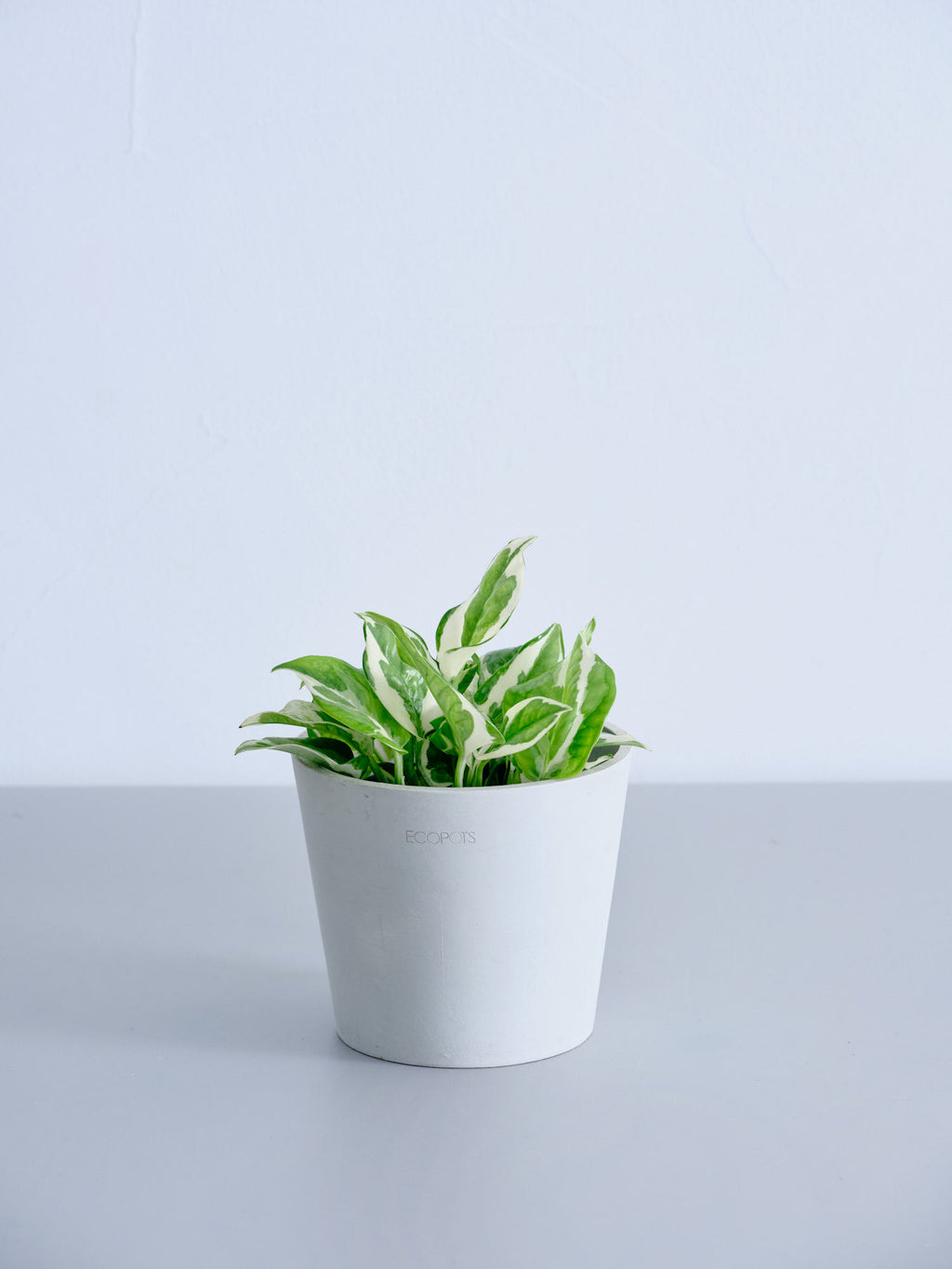 アンドプランツでは、すべての植物にこだわりのプランターをお付けしています。公式プランターとして、植物が引き立つミニマルなデザインとマットな質感が特徴的な「ECOPOTS」を採用。リサイクルプラスチック80%、ナチュラルストーン20%と、環境に配慮した素材で作られており、植物にやさしいサステナブルなアイテムです。