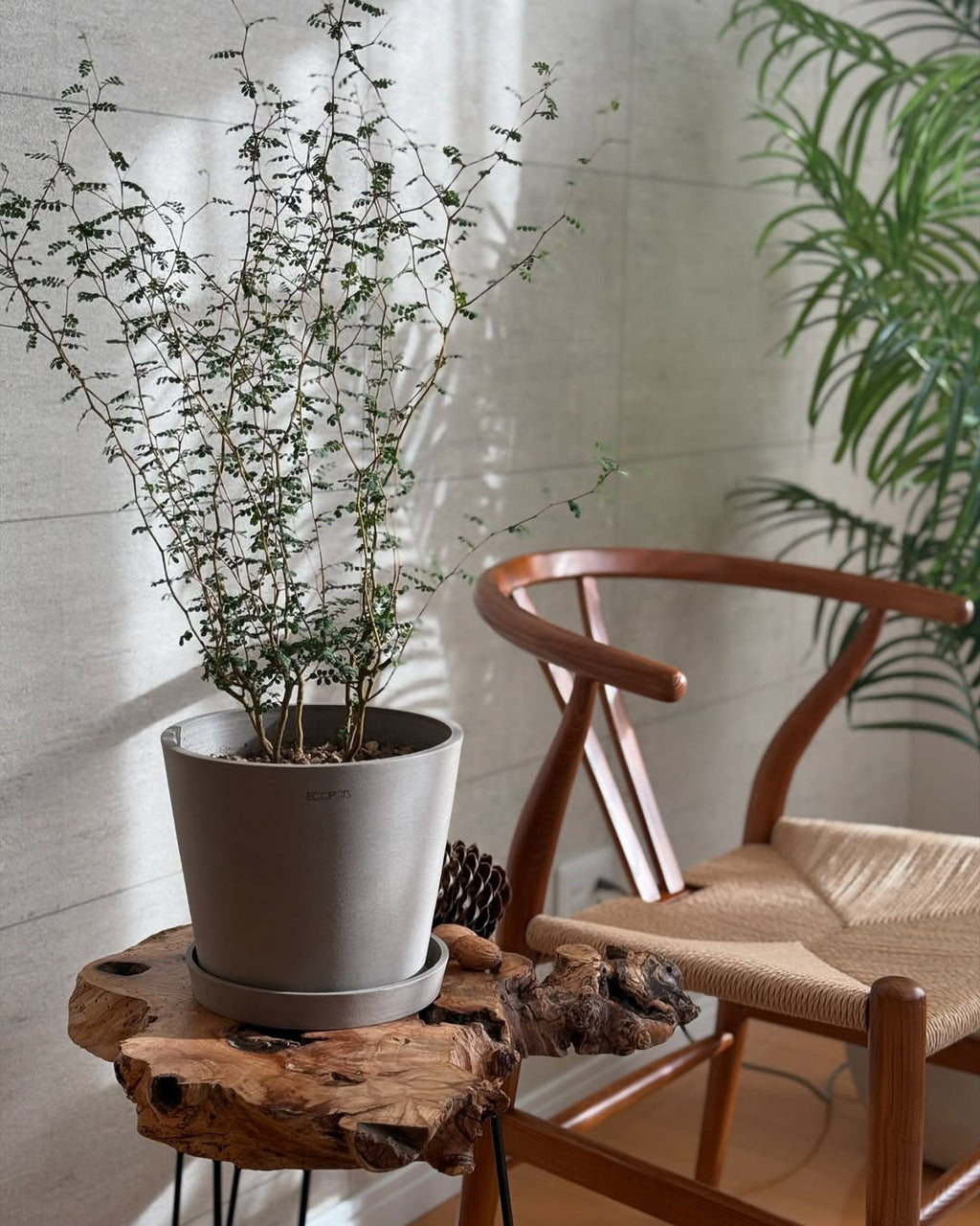 アンドプランツでは、すべての植物にこだわりのプランターをお付けしています。公式プランターとして、植物が引き立つミニマルなデザインとマットな質感が特徴的な「ECOPOTS」を採用。リサイクルプラスチック80%、ナチュラルストーン20%と、環境に配慮した素材で作られており、植物にやさしいサステナブルなアイテムです。