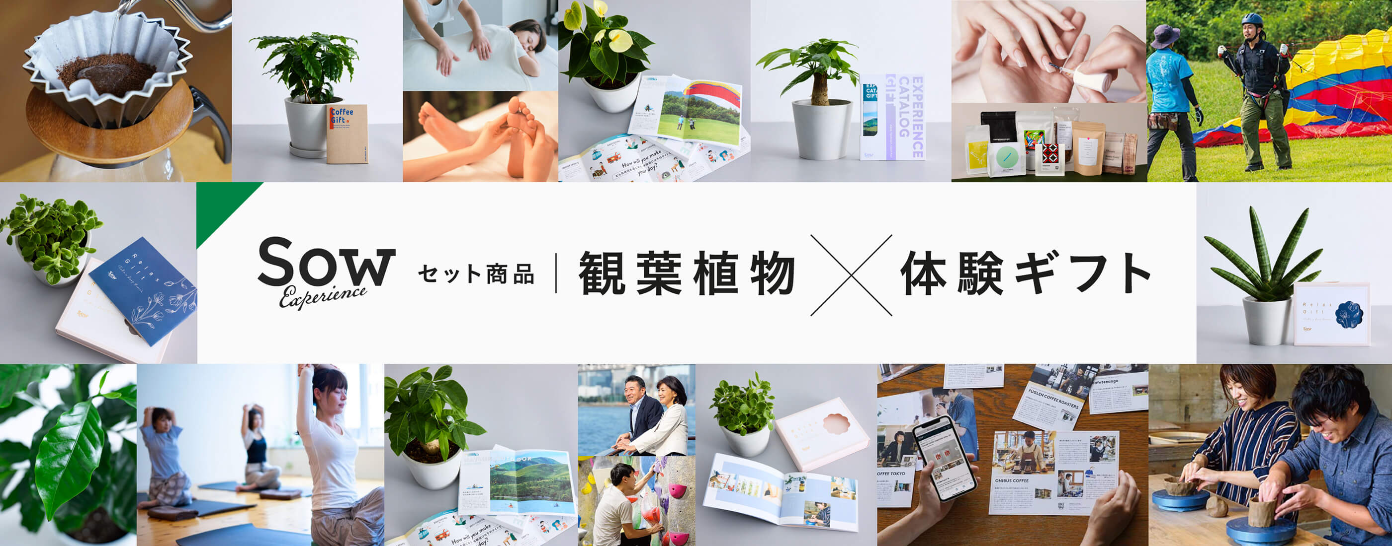 EXPERIENCEとコラボして、「観葉植物×体験ギフト」のセット商品を販売します。素敵な体験ギフトと、それにぴったりな観葉植物をセレクトしました。