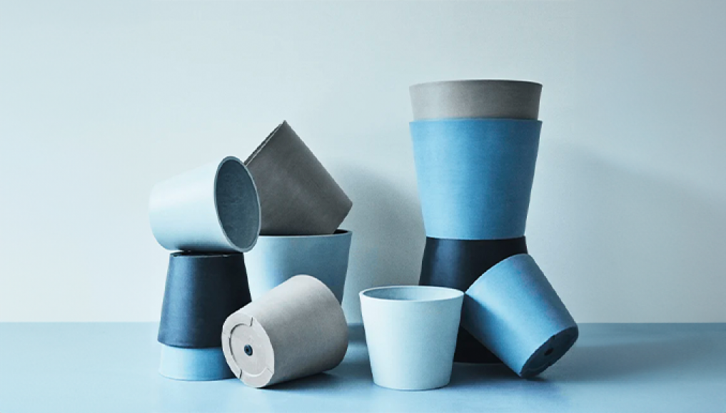 アーバンプランツポットおがくずと石、自然素材の粉末とプラスチックを混ぜ合わせた、軽量で丈夫な植木鉢。鮮やかななカラーバリエーションと、同じ柄は1つとしてない個性的なマーブル柄が特徴です。