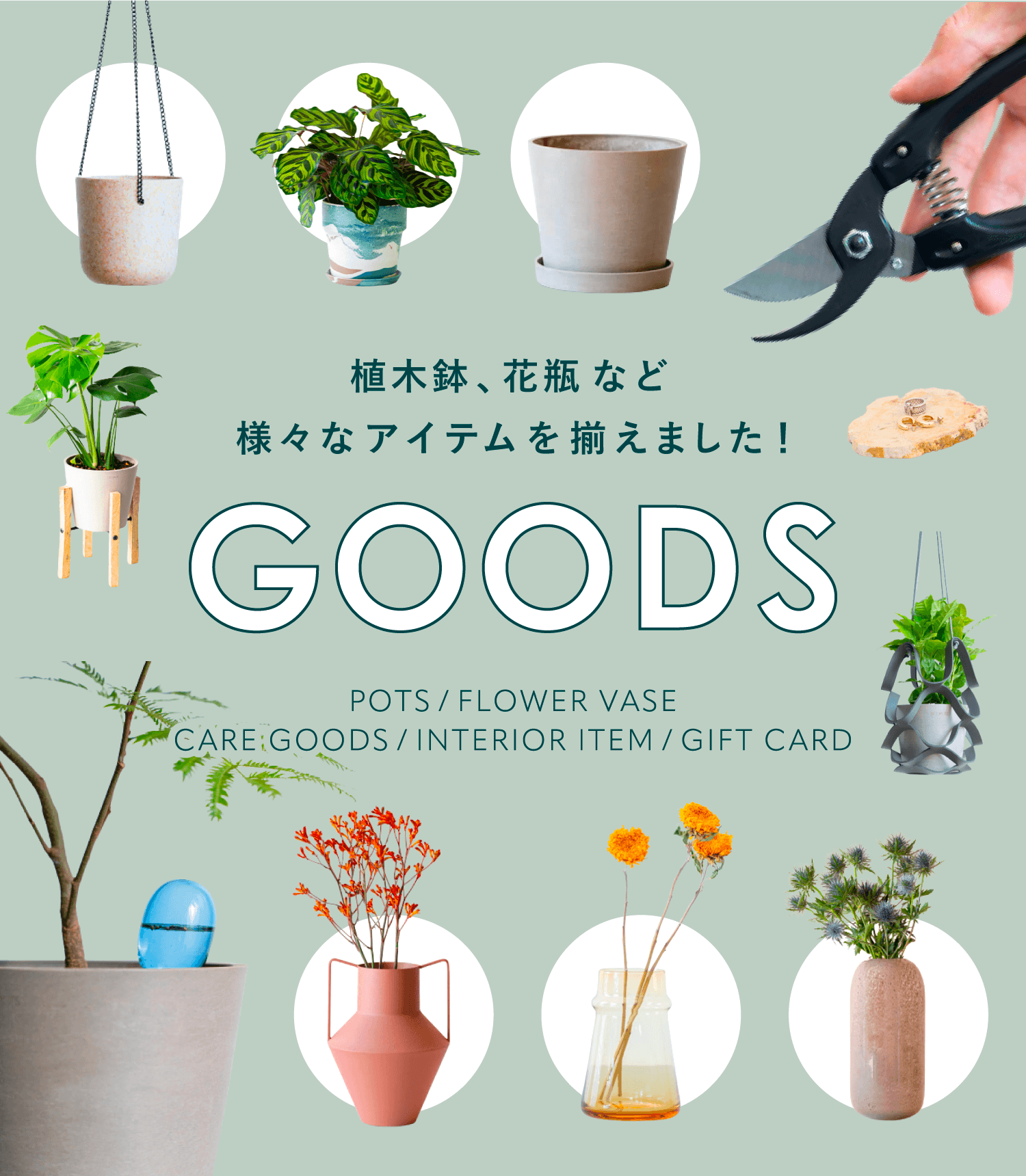 植木鉢や花瓶を始め、植物・花との暮らしが豊かになるアイテムを多数ご用意しています。