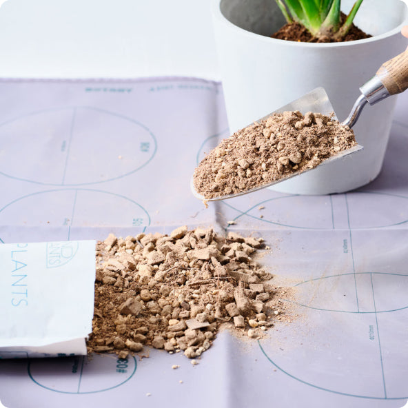 お客さまからの声をもとに、日本の住環境にぴったりの観葉植物の土を制作しました。植物の配送にも適した配合となっています。