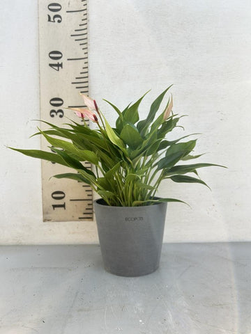 リリーは淡いピンク色の細長い仏炎苞が特徴で、光沢のある葉が上品な印象です。一味違ったおしゃれなアンスリウムです。