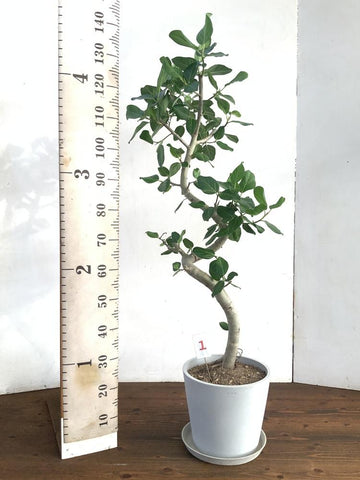 カフェなどでもよく見かけるおしゃれな観葉植物です。 どんなお部屋に置いても馴染みやすいナチュラルな雰囲気で、人気があります。 こちらの個体は沖縄産のもので、原生地で育つ姿が想像できるようなワイルドさです。 暖かい環境で育てられたため、逞しい太い幹が大きな特徴です。特にゴムの木などは 厚く張りのある成熟した葉を楽しむことができます。 こちらの個体は、螺旋状に曲げて仕立てたインテリア性の高い1本です。