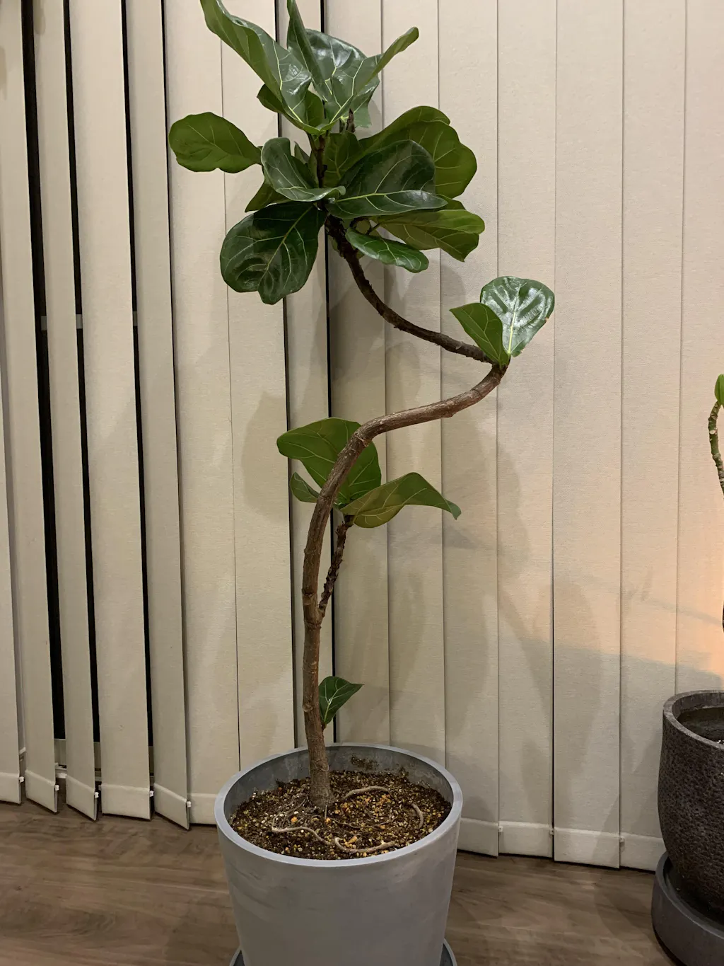 届いてみたら曲がりの具合がとっても美しくて幹もたくましく、葉っぱもイキイキな緑で感激です。