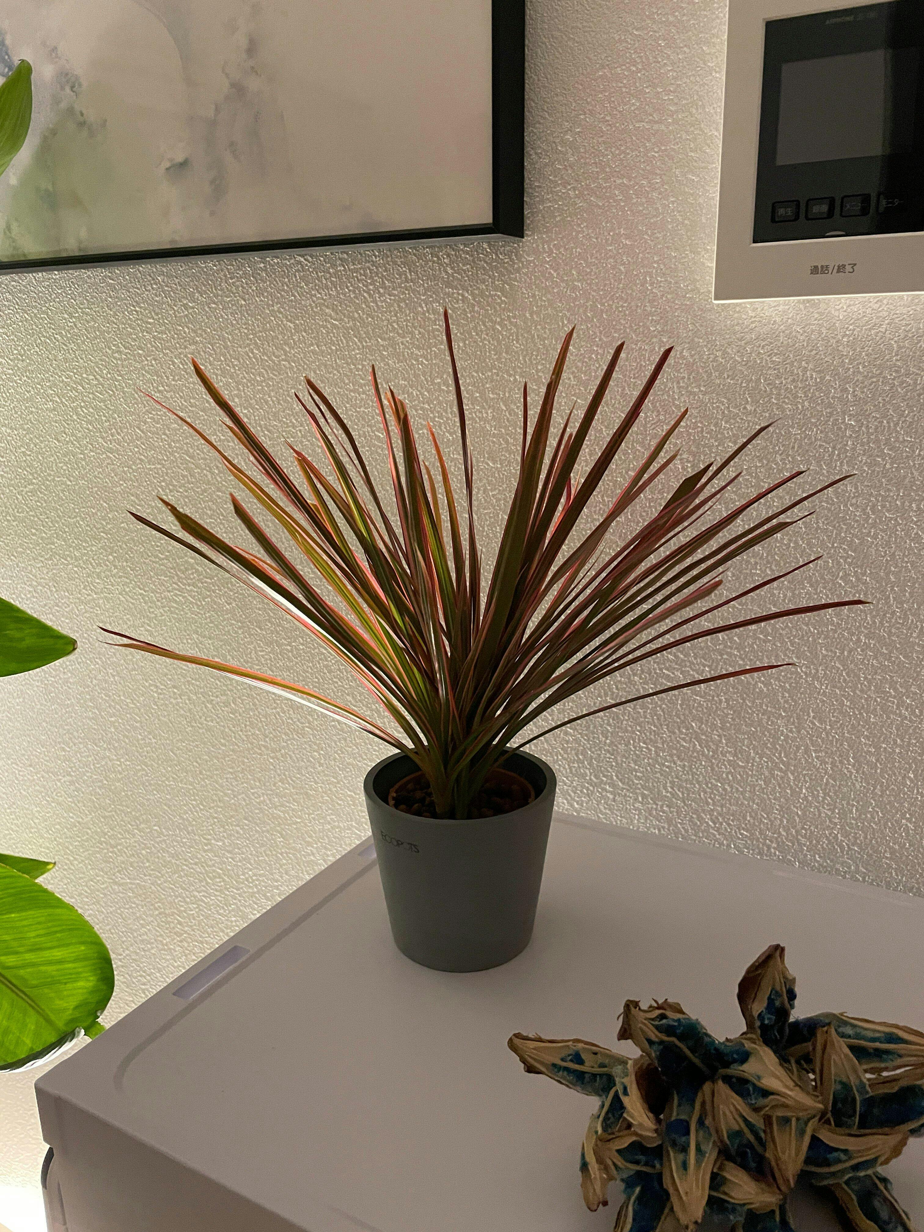 赤系などグリーン系以外の植物を追加したかったのでこちらを購入。上方にスラっと素敵に広がっていて美しいです。高さは35cmぐらいで卓上に置くには丁度いい大きさでした。