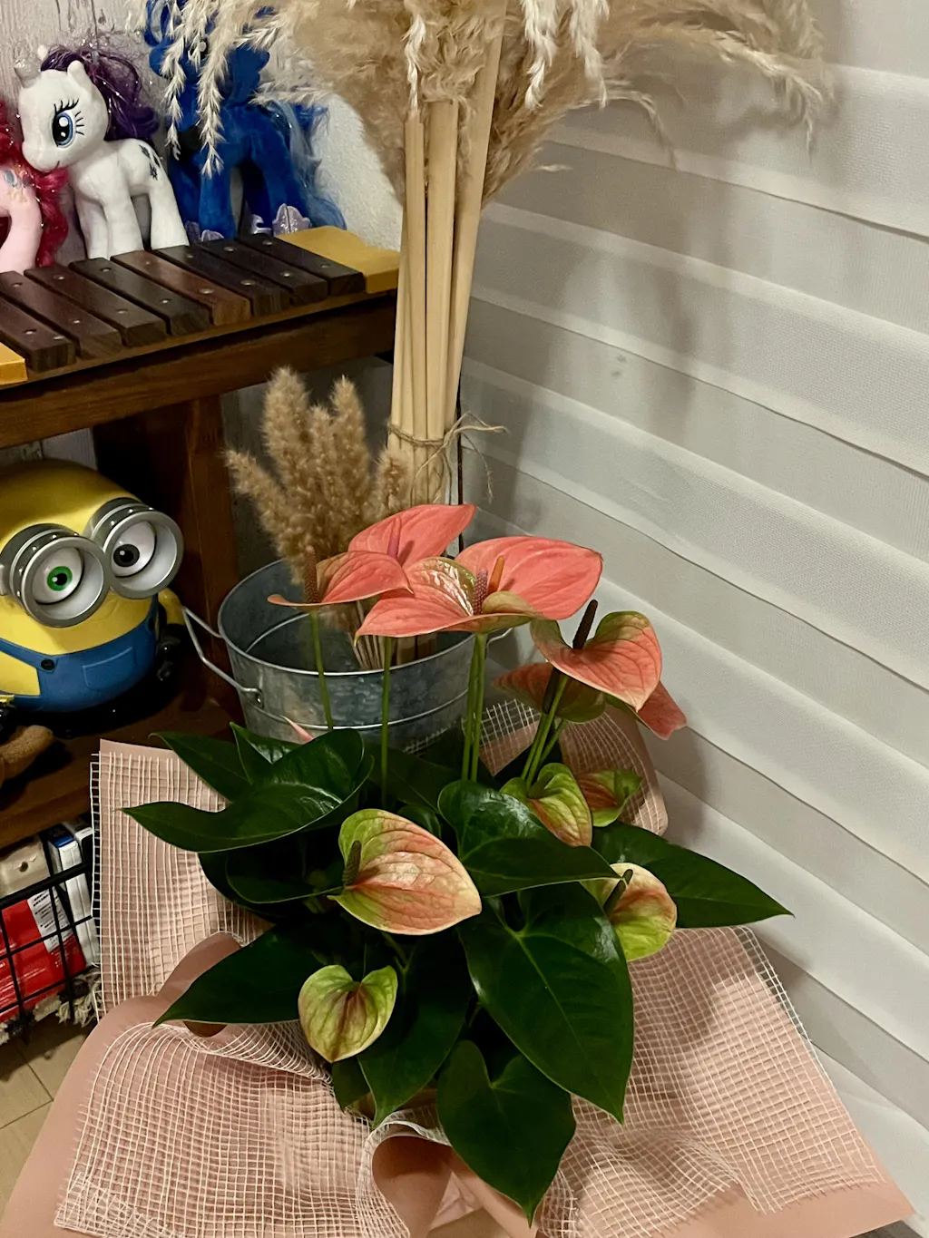 母の日用に植物を探していたらアンスリウムのピンクを見つけてコレだっと思い決めました。