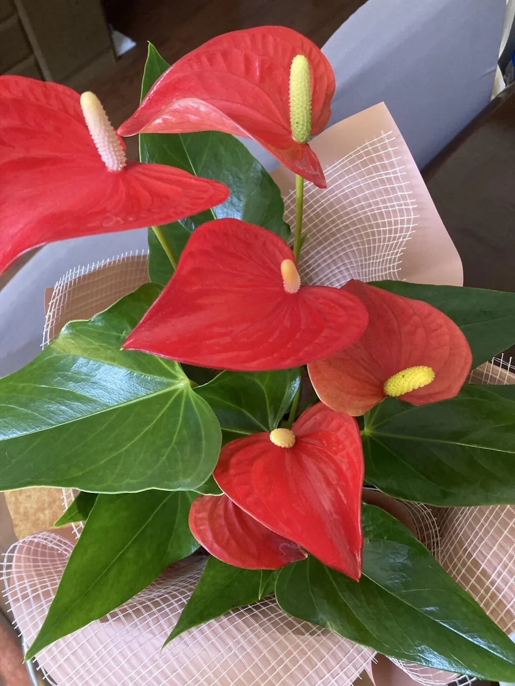 母の日の贈りものに、感謝の気持ちを華やかに伝えるアンスリウム。