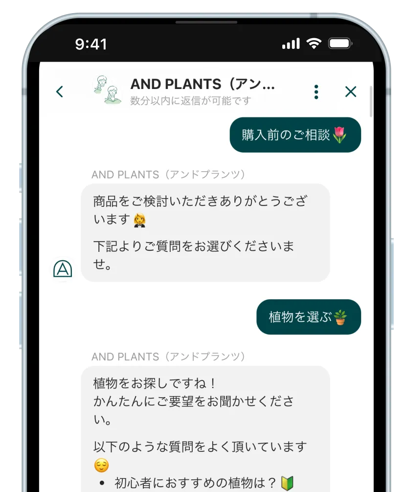 サイト上で気軽に相談ができるサービスです。おすすめ商品の相談や育て方の相談など、何でも気軽にご相談ください。