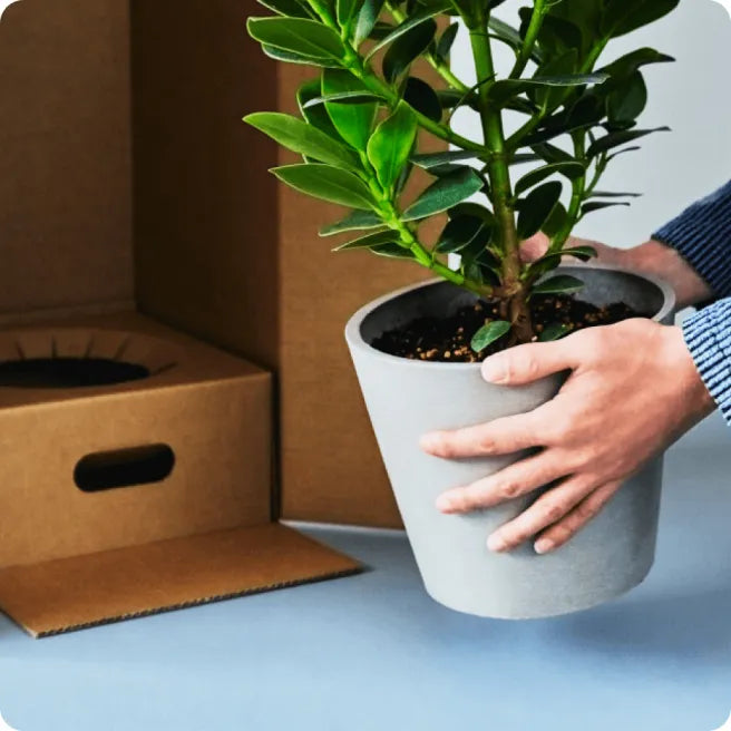 アンドプランツでは、すべての植物にこだわりのプランター「ECOPOTS」をつけてお届けします。植物が引き立つミニマルなデザインとマットな質感が特徴的です。軽量で丈夫な素材でできているため、割れる心配もありません。