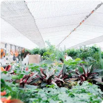 植物の管理に適したビニールハウスで丁重に管理しています。植物を新しい環境に慣れさせるとともに、注文が入ったらすぐにお届けできる体制を整えています。