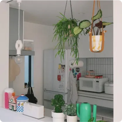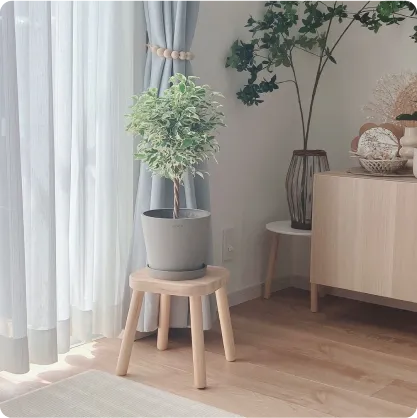 白い斑が入った小さな葉が雪の結晶のようにきらめくポリシャス。繊細で清涼感のある姿は、置くだけで空間を明るく洗練された雰囲気に演出してくれます。葉が密に茂り、コンパクトにまとまりやすいため、リビングや玄関、デスク周りなど場所を選ばずに楽しめるのも魅力です。