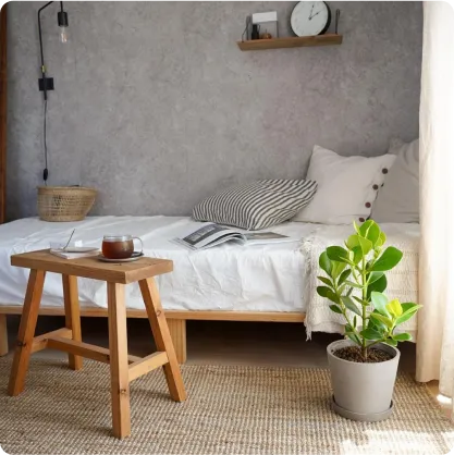 羊毛100%の2枚のフェルトシートを接着させた仕様で、植木鉢を乗せたまま床を滑らせてもフローリングに傷がつかず、植木鉢の下に水がこぼれても床に水染みなどが残る心配もありません。
